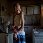 Former farmworker Fabian Tomasi, 47, shows the condition of his emaciated body as he stands inside his home in Basavilbaso, in Entre Rios province, Argentina on March 29. Tomasi’s job was to keep the crop dusters flying by quickly filling their tanks but he says he was never trained to handle pesticides. Now he is near death from polyneuropathy. “I prepared millions of liters of poison without any kind of protection, no gloves, masks or special clothing. I didn’t know anything. I only learned later what it did to me, after contacting scientists,” he said. (Natacha Pisarenko/Associated Press)