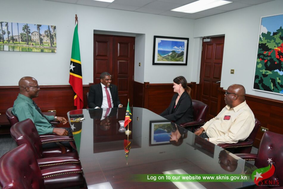 BASSETERRE, Saint Kitts and Nevis, April 4, 2024 (Press Secretary, PMO) – Prime Minister the Honourable Dr. Terrance Drew welcomed Ms. Celina Niehoff, the International Affairs Coordinator at the Chamber of Crafts Flensburg, Germany, on a courtesy visit today, Thursday, April 4th, 2024.
