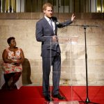 Prince Harry delivers a speech during a welcome reception hosted by the Governor General, Sir Rodney Williams, at the newly renovated Clarence House on the first day of an official visit, on Nov. 20, 2016, in Antigua. Chris Radburn – Pool / Getty Images