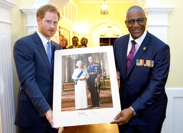 Harry is touring six countries where the Queen is official head of state — Antigua and Barbuda, Barbados, Grenada, St. Kitts and Nevis, St. Lucia, St. Vincent and the Grenadines — and also the Commonwealth nation of Guyana.