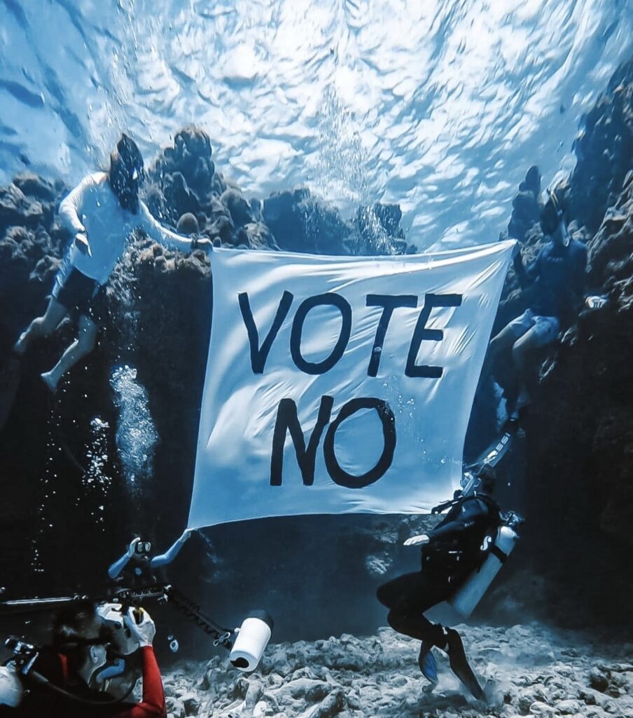 Just before the referendum, young people, environmental groups, and divers came together for a powerful underwater demonstration at Eden Rock, holding up a “Vote NO” banner beneath the waves. The images captured during that event showed exactly what we were fighting to protect—and helped remind voters of the beauty at stake.