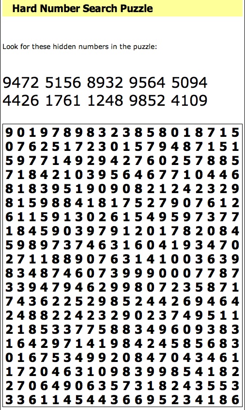 Puzzles for May 6 2014 Number search/Sudoku/Word search/Crossword