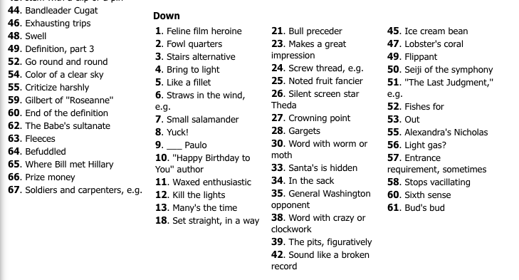 HomepageiEntertainmentPuzzles for Nov 4 2019 Number search/Sudoku/Word search/Crossword Puzzles for Nov 4 2019 Number search/Sudoku/Word search/Crossword Posted on November 3, 2019 TODAY’S CROSSWORD PUZZLE #1 YESTERDAY’S CROSSWORD PUZZLE # 5 SOLUTION LEAVE A RESPONSE Cancel replyYour email address will not be published. Required fields are marked *Comment * Name * Email * Website Post navigation Previous Post3 Nov 2019 Weather in Cayman & Tropical Report Next PostRare mutations drive cystic fibrosis in Caribbean