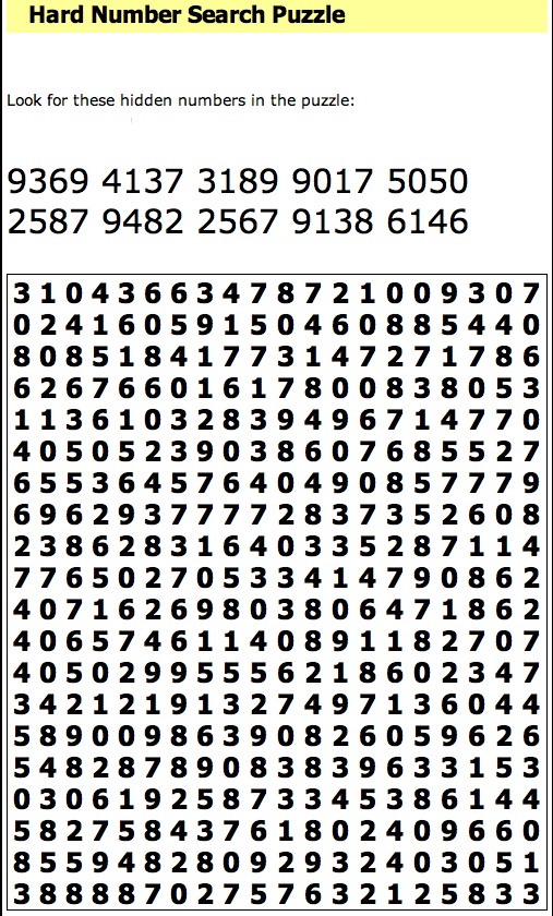 Puzzles for Oct 1 & 2 Number search/Sudoku/Word search/Crossword