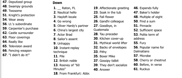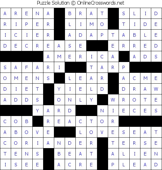 YESTERDAY’S CROSSWORD PUZZLE # 5 SOLUTION