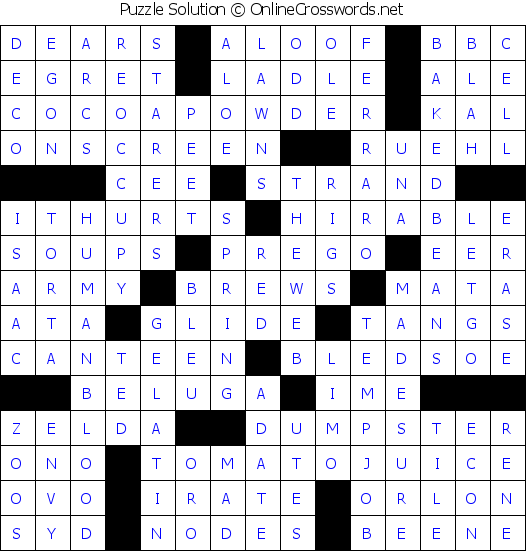 YESTERDAY’S CROSSWORD PUZZLE # 1 SOLUTION