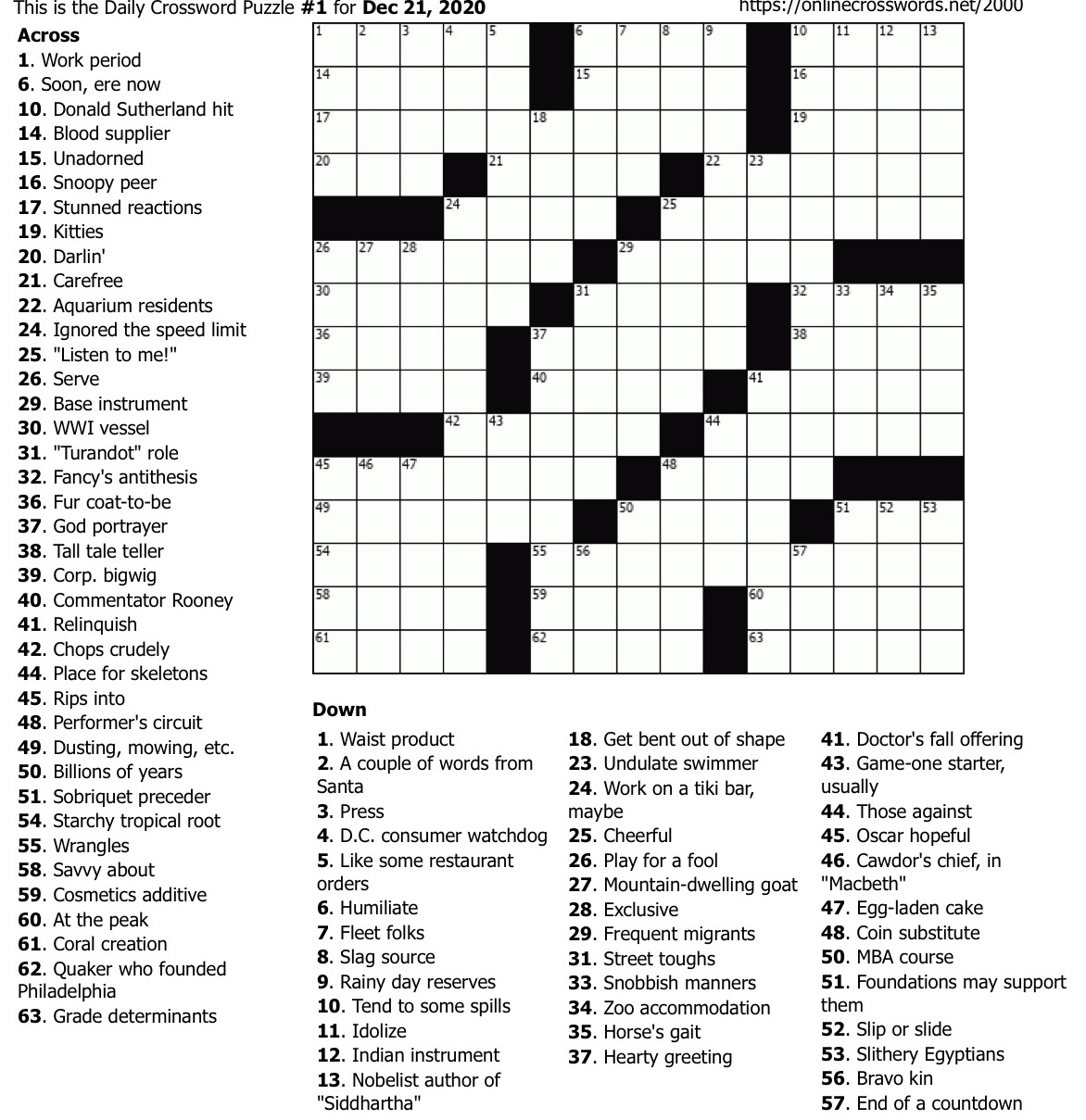 HomepageiEntertainmentPuzzles for the week Puzzles for the week Posted on December 21, 2020 Puzzles for Dec 21-27 Number search/Sudoku/Word search/Crossword Many Puzzles TODAY’s CROSSWORD PUZZLE #1 LAST WEEK’s CROSSWORD PUZZLE SOLUTION LEAVE A RESPONSE Cancel replyYour email address will not be published. Required fields are marked *Comment * Name * Email * Website Post navigation Previous PostXmas & NY Announcements Next PostCartoon of the week