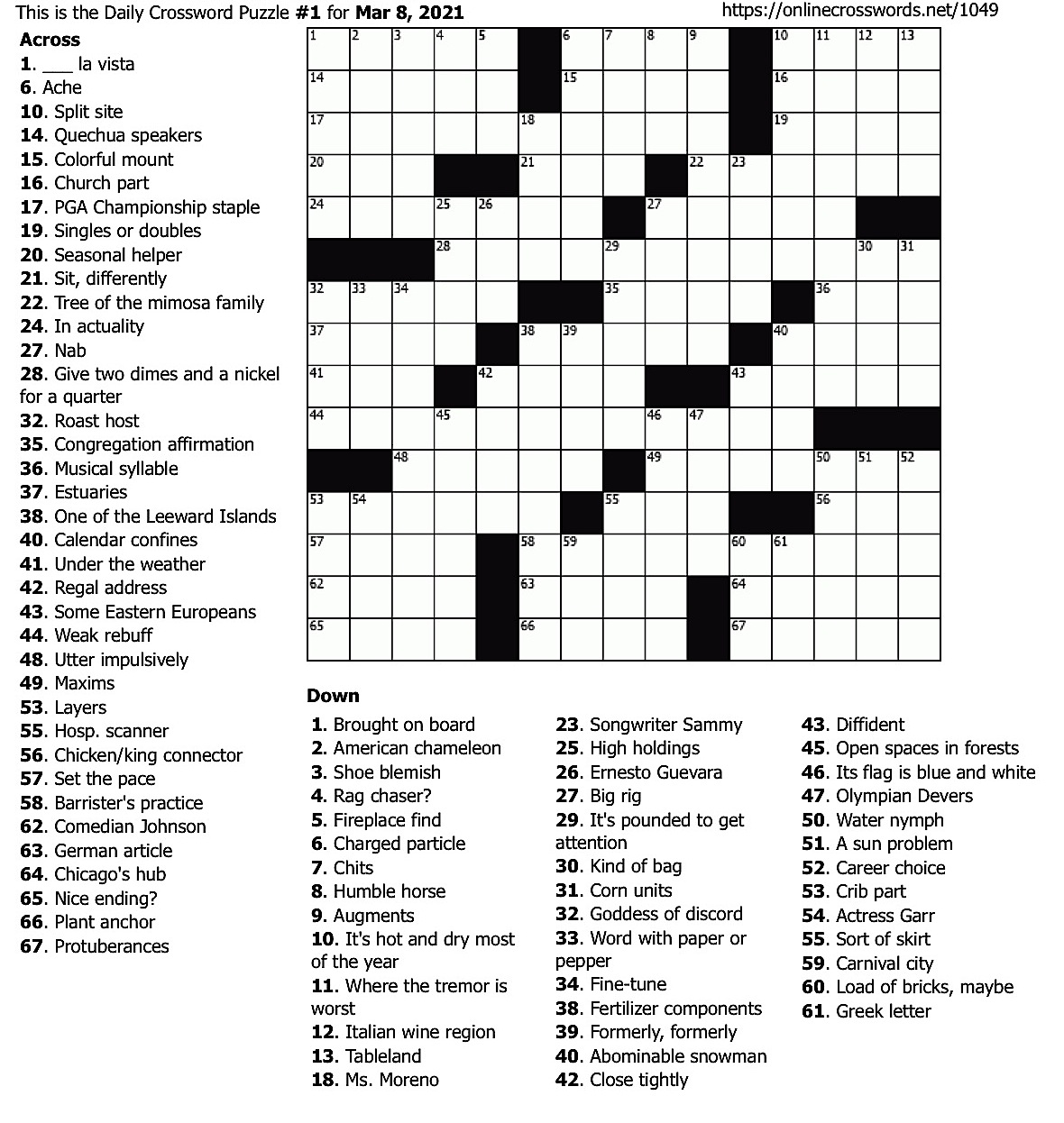 HomepageiEntertainmentPuzzles of the week Puzzles of the week Posted on March 8, 2021 Puzzles for Mar 8-15 Number search/Sudoku/Word search/Crossword Number search – Many Puzzles THIS WEEK’S CROSSWORD PUZZLE #1 LAST WEEK’S CROSSWORD PUZZLE #5 SOLUTION LEAVE A RESPONSE Cancel replyYour email address will not be published. Required fields are marked *Comment * Name * Email * Website Post navigation Previous PostCartoon of the week Next Post8 Mar Weather in Cayman