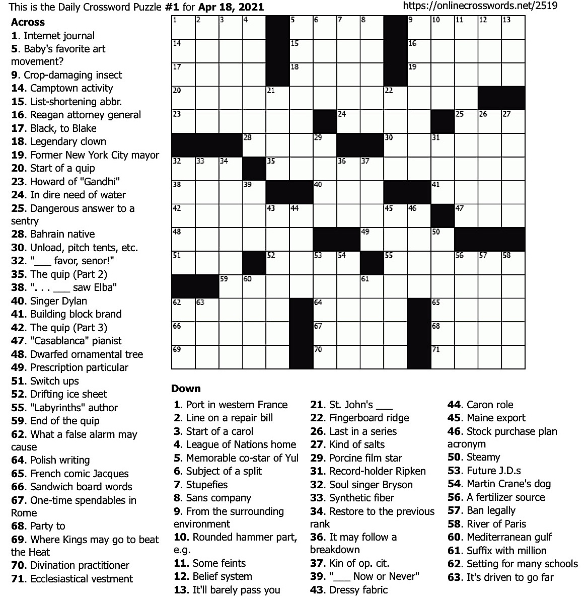 HomepageiEntertainmentPuzzles of the week Puzzles of the week Posted on April 18, 2021 Puzzles for April 18-25 2021 Number search/Sudoku/Word search/Crossword Many Puzzles THIS WEEK’s CROSSWORD PUZZLE #1 LAST WEEK’s CROSSWORD PUZZLE #5 SOLUTION LEAVE A RESPONSE Cancel replyYour email address will not be published. Required fields are marked *Comment * Name * Email * Website Post navigation Previous PostCartoon of the week Next PostCayman: Progressives Leader calls for calm