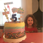 I love this trick when decorating a cake is my main objective. My daughter recently turned 5, and although she loves to bake alongside me, she loves decorating even more. This year she really wanted to decorate her birthday cake. We ran short on time that week for baking, but we picked up cake layers and frosting from the store and we were able to build and decorate her cake together the night before her party. I didn’t spend the day stressing about getting the cake cooled before bedtime and I didn’t have to clean the whole kitchen afterwards (although, admittedly, I still had to sweep tons of sprinkles up). I actually got to enjoy the best part of cake-baking with her without being distracted by cleaning or stressed for time.