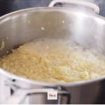 Finely chop the cauliflower (for whole cauliflower only): Halve the cauliflower through the stem. Cut a “V” shape around the core to remove the core from each half. Finely chop the cauliflower. The smaller the pieces, the faster the cauliflower will cook and the creamier the finished dish will be.