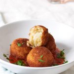 Make ahead: Balls can be formed and breaded up to 1 day in advance. Store in the refrigerator. You may need to add an extra 1 to 2 minutes to the frying time.