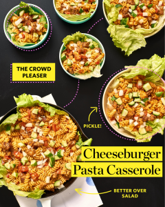 Savory morsels of ground beef wind between the curves of tender corkscrew pasta and a cheesy sauce spiked with a tangy hint of mustard. This is an all-American burger served casserole-style, and it’s what easy and delicious weeknight meals are made of.