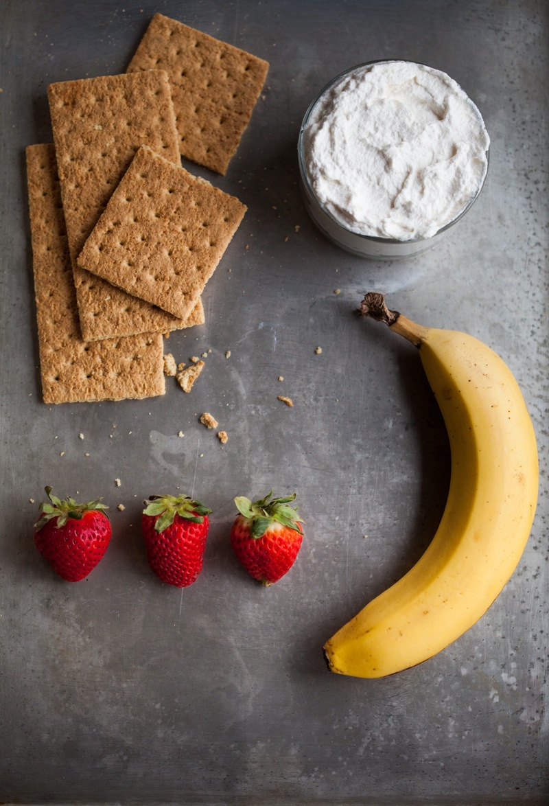 Top with cream and fruit: Top with another quarter of the cream and the remaining fruit. At this point you’ll have three layers of graham crackers, three layers of cream, and three layers of fruit.