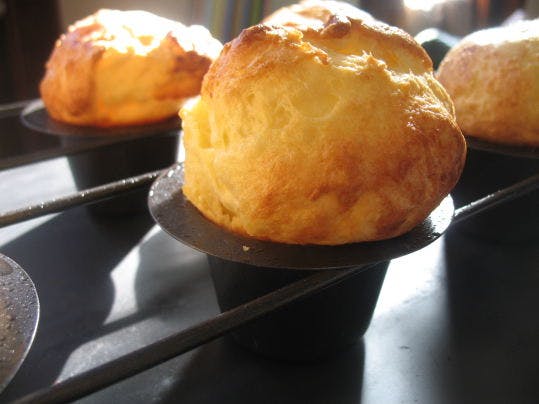 You can’t go wrong adding buttery popovers to your brunch menu. The airy, buttery roll is lighter than the traditional biscuit or scone, but is equally delectable when slathered with butter and jam.