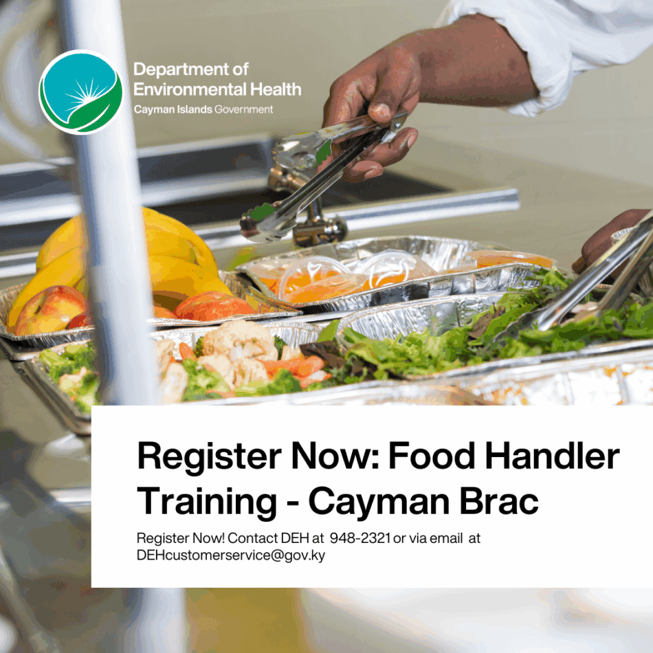 Grand Cayman, August 29, 2025 – The Department of Environmental Health (DEH) is conducting a Food Hygiene Handlers Certification session in Cayman Brac on Tuesday, September 2, 2025, for persons who have never been certified and persons whose certifications have expired.