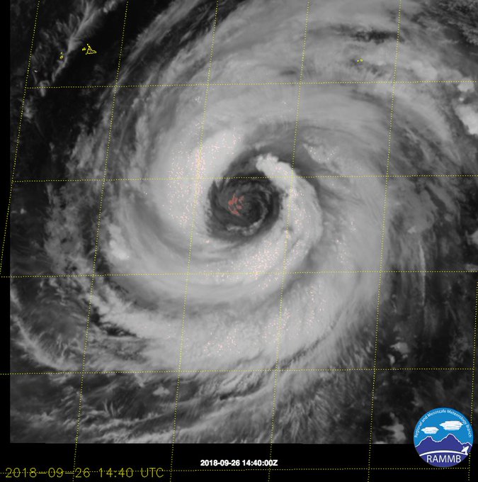 | Figure 3. VIIRS day/night satellite image of Typhoon Trami at 0429Z (12:29 am EDT) Wednesday, September 26, 2018. Image credit: RAMMB/CSU/CIRA. |