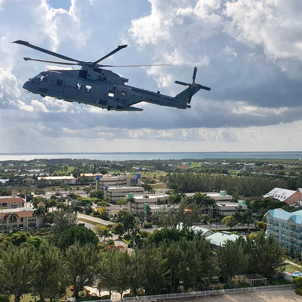 Embarked on the vessel are three Merlin Helicopters and one Wildcat helicopter. Today they flew two helicopters on a recce of Grand Cayman and on a drugs interdiction exercise with the RCIPS Marine Unit vessels.