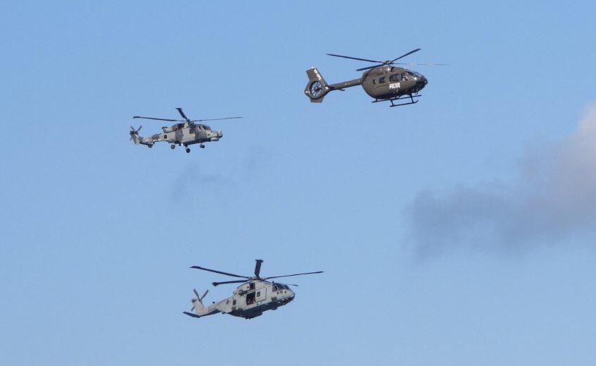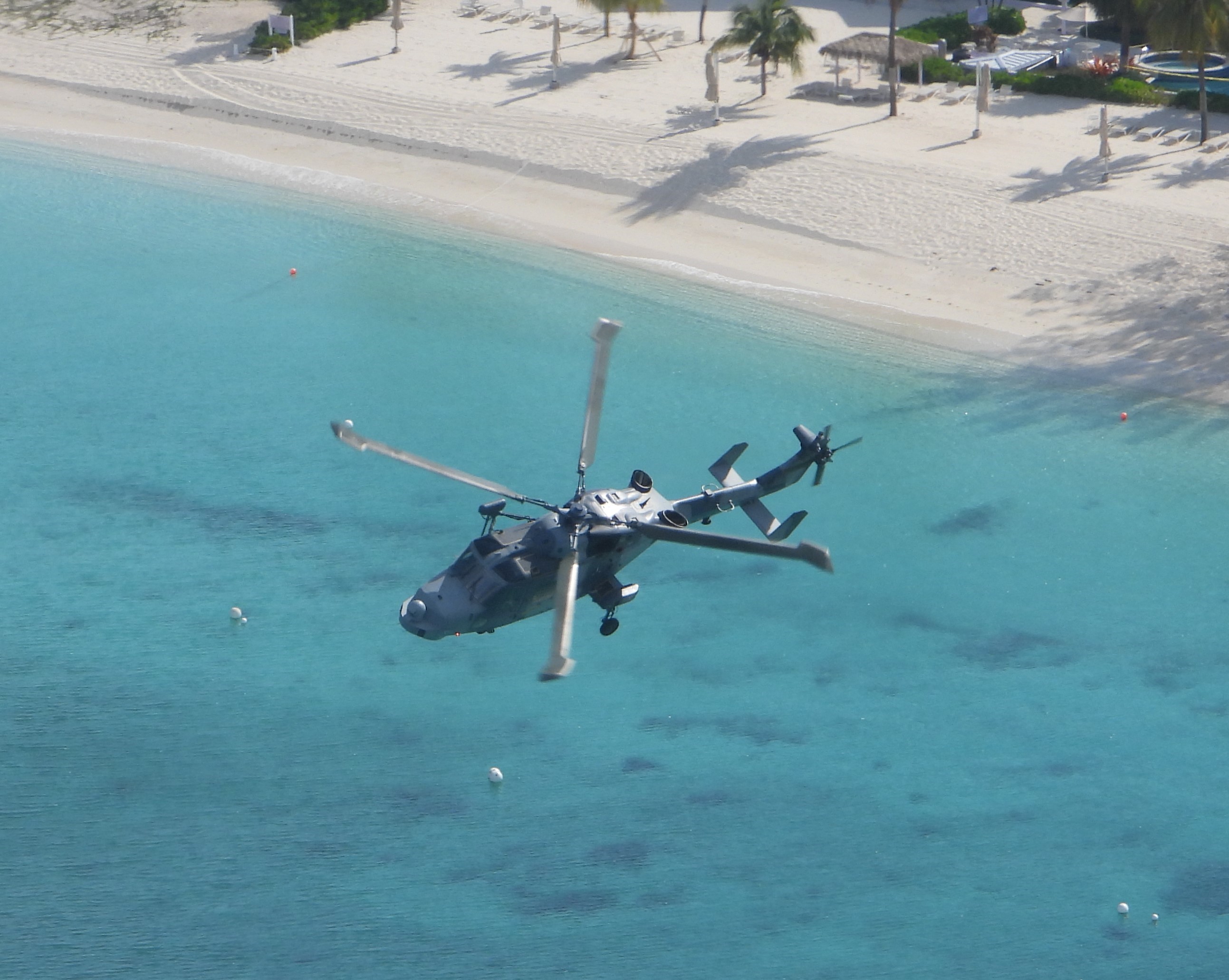 The RCIPS helicopter met the Navy helicopters airborne and conducted a familiarisation over the radio in loose formation. They looked for key areas and landing sites (no landings were made) in preparation for the upcoming hurricane season and the usual general brief of the Islands.