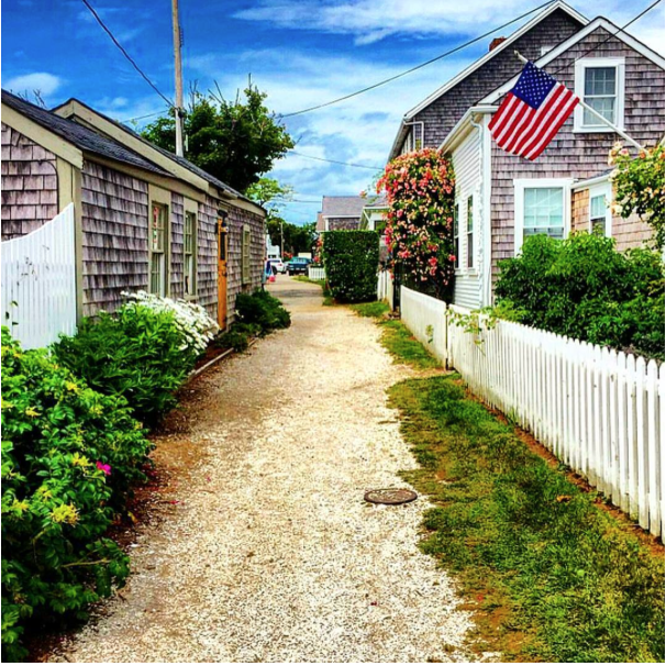 Here’s Nantucket — specifically Siasconset (known locally as Sconset), where you’ll find a cluster of gray-shingled cottages covered in pink roses.