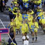 Therese Alshammar carries the flag of Sweden during the opening ceremony for the 2016 Summer Olympics in Rio de Janeiro, Brazil, Friday, Aug. 5, 2016. Photo: AP