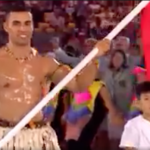 Tonga’s Australian-born flagbearer Pita Nikolas Aufatofua has proven that less is more. Courtesy of the Seven Network