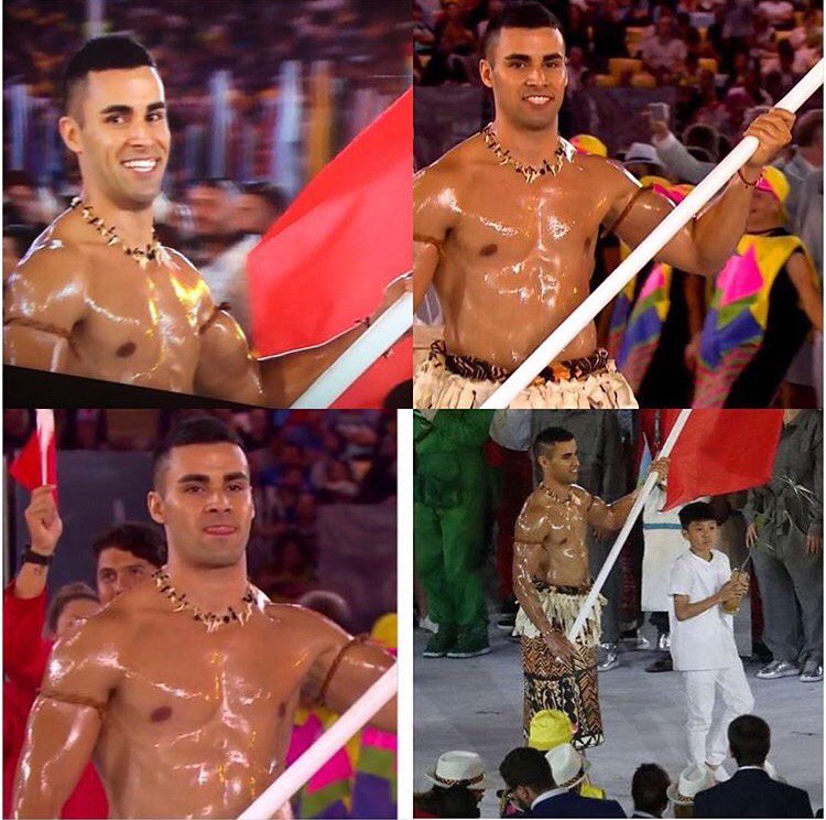 TONGA: WITH ABS LIKE THAT WHO NEEDS A UNIFORM? Tongan flagbearer Pita Taufatofua and his well oiled torso became the stars of the athletes’ parade.