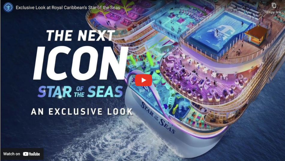 I’m very excited to share our new Royal Caribbean video that we just launched, “Exclusive Look at Royal Caribbean’s Star of the Seas.” Get an exclusive preview of what’s to come on Royal Caribbean’s Star of the Seas. This ultimate vacation experience offering 7-night Caribbean getaways makes its debut in Port Canaveral (Orlando), Florida, in summer 2025. The next combination of the best of every vacation offers a lineup of experiences for everyone, from thrills like the largest waterpark at sea and a neighborhood designed for young families to 40-plus ways to dine and drink – and more.