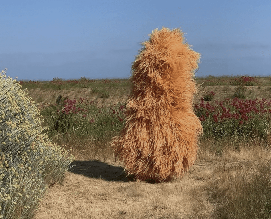 Three Coverings include an immersive wall hanging, a chair sculpture, and a conical freestanding structure draped with a large woven sculptural form. Awinding gravel path will guide visitors through the garden, with the main sculpture loosely referencing and evoking traditional celebrations connected to the land. In the same way that people would gather around Stonehenge or the maypole, Fleming’s sculptures seem to have a joyful, vibrant magnetism that draws people to them. The meeting of past, present and future is always an undercurrent in Fleming’s work. An important theme in Fleming’s practice is connection; the artist describes her works as ‘conversational tools’, accessible objects to be enjoyed.
