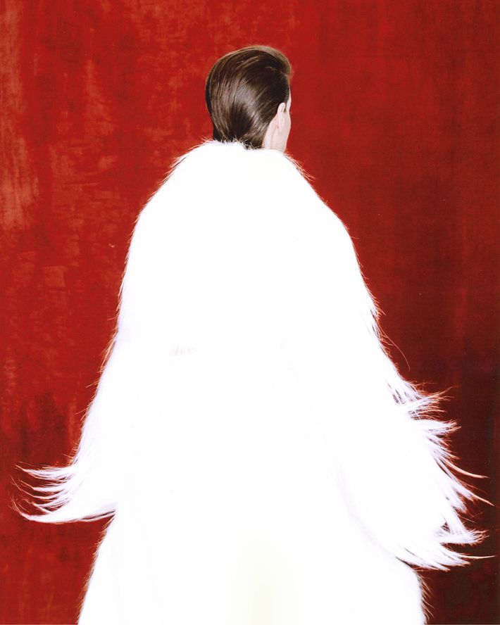 STANDING GROUNDRed Melton Wool Evening Coat With Encapsulated Bead Motif and Red Hooded Knit Evening Dress, available upon request. VAN CLEEF & ARPELSÀ Cheval Ring, at vancleefarpels.com.Photo: MAR+VIN