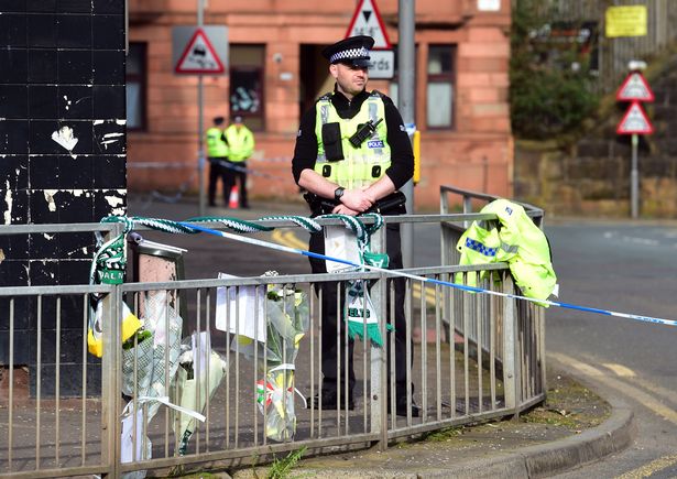 Police stand guard at the scene of the shooting in Glasgow (Image: Daily Record)