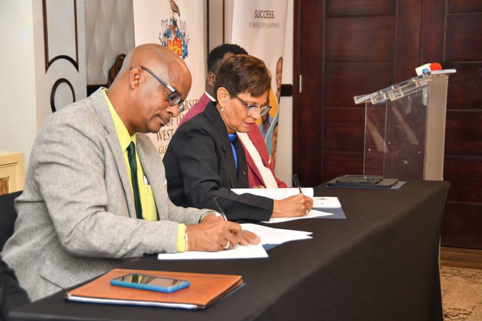 The MoU, signed during a ceremony hosted at Sandals Barbados, provides a framework for The UWI Global Campus and the SCU to facilitate further cooperation in education and training initiatives across the Caribbean region. Dr. Luz Longsworth, Senior Corporate Director for the SCU, described the event as a historical one, where two great organizations come together to achieve great things. “Both institutions have much in common which allows us to join forces to impact the sustainability of our region. We focus on the development and education of our people and countries of this beautiful Caribbean. This MoU will create a framework for the SCU and The UWI Global Campus to work towards coordinating digital and technology related projects and initiatives across campuses and across the Sandals group.”