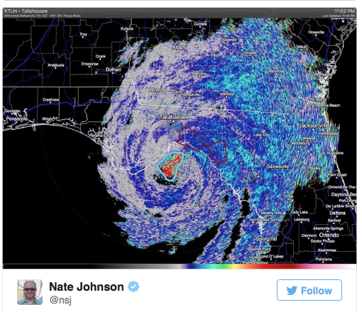 Snapshots of weather radars showed flocks of birds trapped in Hermine’s eye, which likely provided a space of relative calm as the storm’s winds peaked at 80 miles per hour late last week.