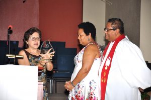The service came to a conclusion with the Official Act of Releasing Rev. Donovan from the Savannah charge. After a final hymn of appreciation and the benediction by Rev. Dr. Yvette Noble Bloomfield, RDGS of Cayman Islands United Church Council, everyone enjoyed fellowship in the hall with cake and ice cream.