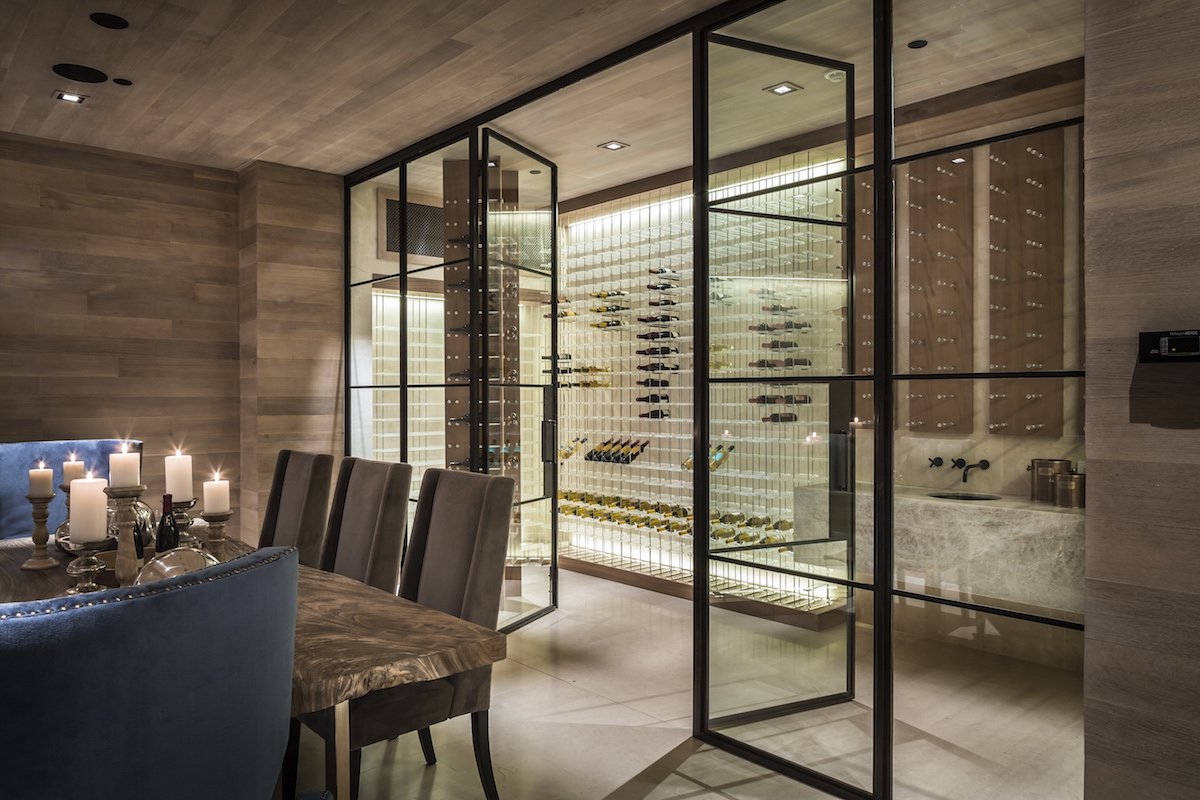 The kitchen is next to one of two wine vaults.