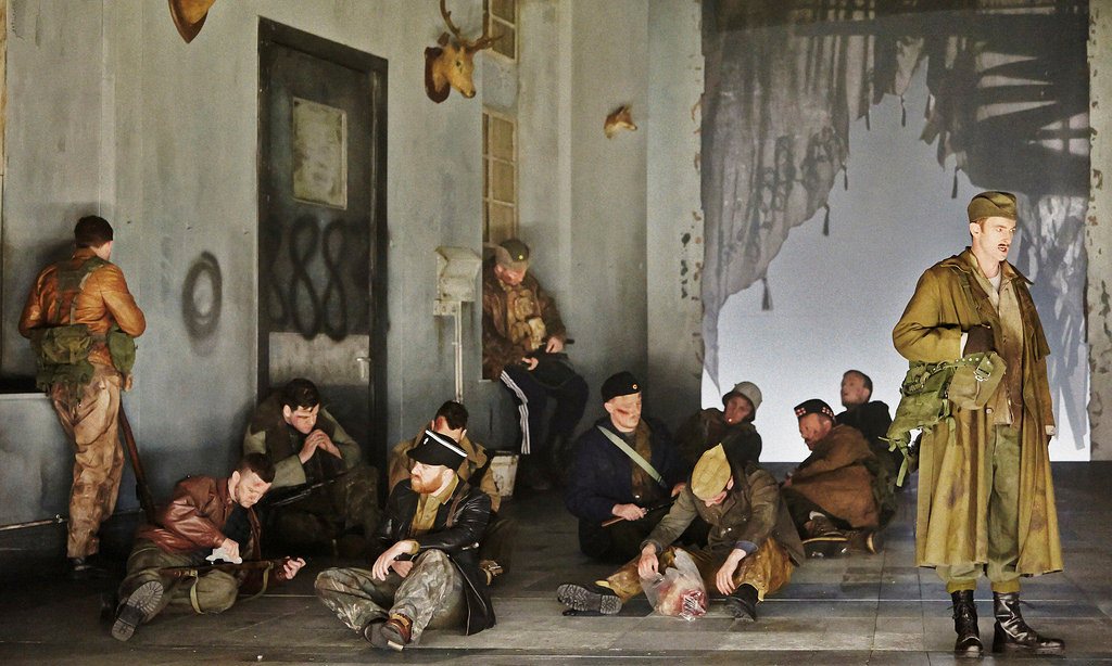 A scene from the Welsh National Opera’s 2014 production of Macbeth with performers in early-20th century attire. Photograph: Patrick Redmond