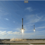After the ascent, the two side boosters detached from the rocket, flipped around, and headed back down toward Florida.