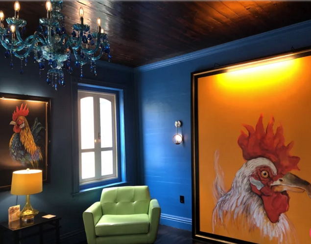 The Fred, the first new hotel to open on St. Croix in 31 years and the only one that’s both in town and on the beach in Frederiksted, is quaint and classic on the outside but quirky and wild on the inside. The pool and restaurant/bar are still under construction, but a large porch in front and a balcony lounging area in the back offer plenty of outdoor space and the bright blue walls, green couches, and giant rooster painting let you know your stay at the adults-only hotel will be anything but dull as soon as you enter. The cheeky “Sleep with Fred” T-shirts are a guaranteed crowd-pleaser if you’re looking for a gift to bring home.