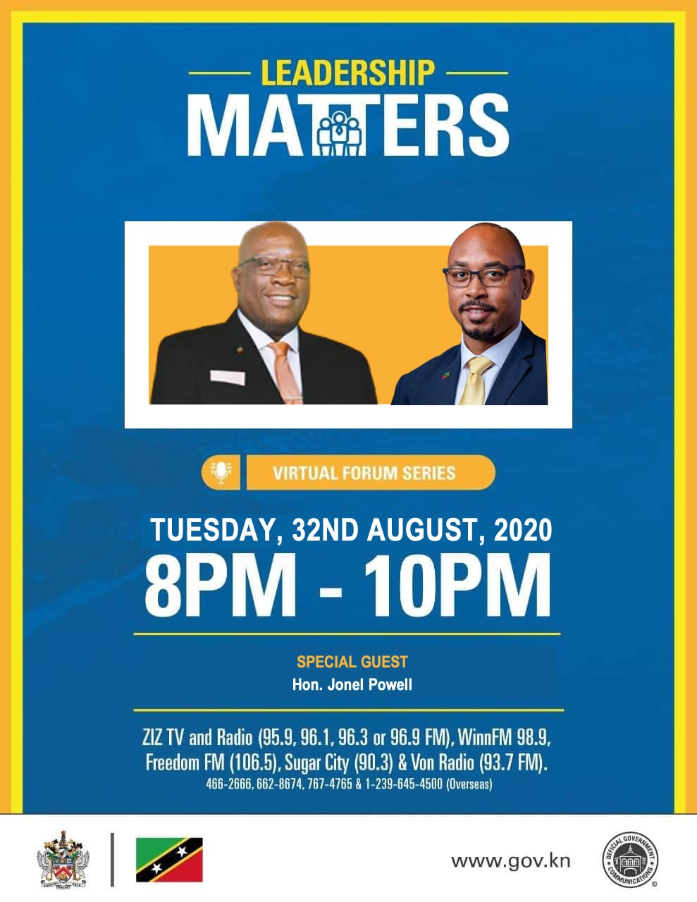 ST. K-N: On ‘Tomorrow’s Leadership Matters’, PM Harris will be joined by The Hon. Jonel Powell, Minister of Education, Youth, Sports & Culture