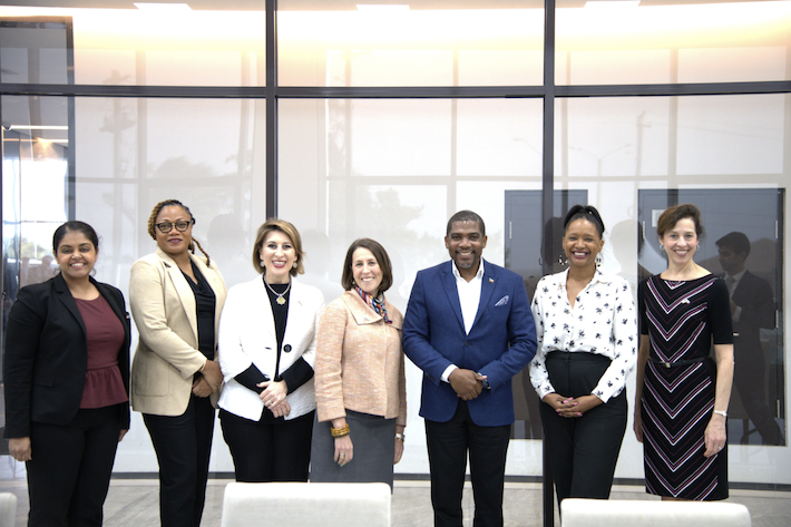 (L-R) Head of Services, Thelma Richard; Barbara Feinstein, Deputy Assistant Secretary for Caribbean Affairs and Haiti Bureau of Western Hemisphere Affairs; Ambassador Jessye Lapenn, Senior Coordinator for Atlantic Cooperation Bureau of Oceans and International Environmental and Scientific Affairs; Prime Minister of Saint Kitts and Nevis, the Honourable Dr. Terrance Drew; Permanent Secretary in the Prime Minister’s Office, Naeemah Hazelle; Principal Deputy Assistant Secretary for Energy Diplomacy in the Bureau of Energy Resources, Laura Lochman