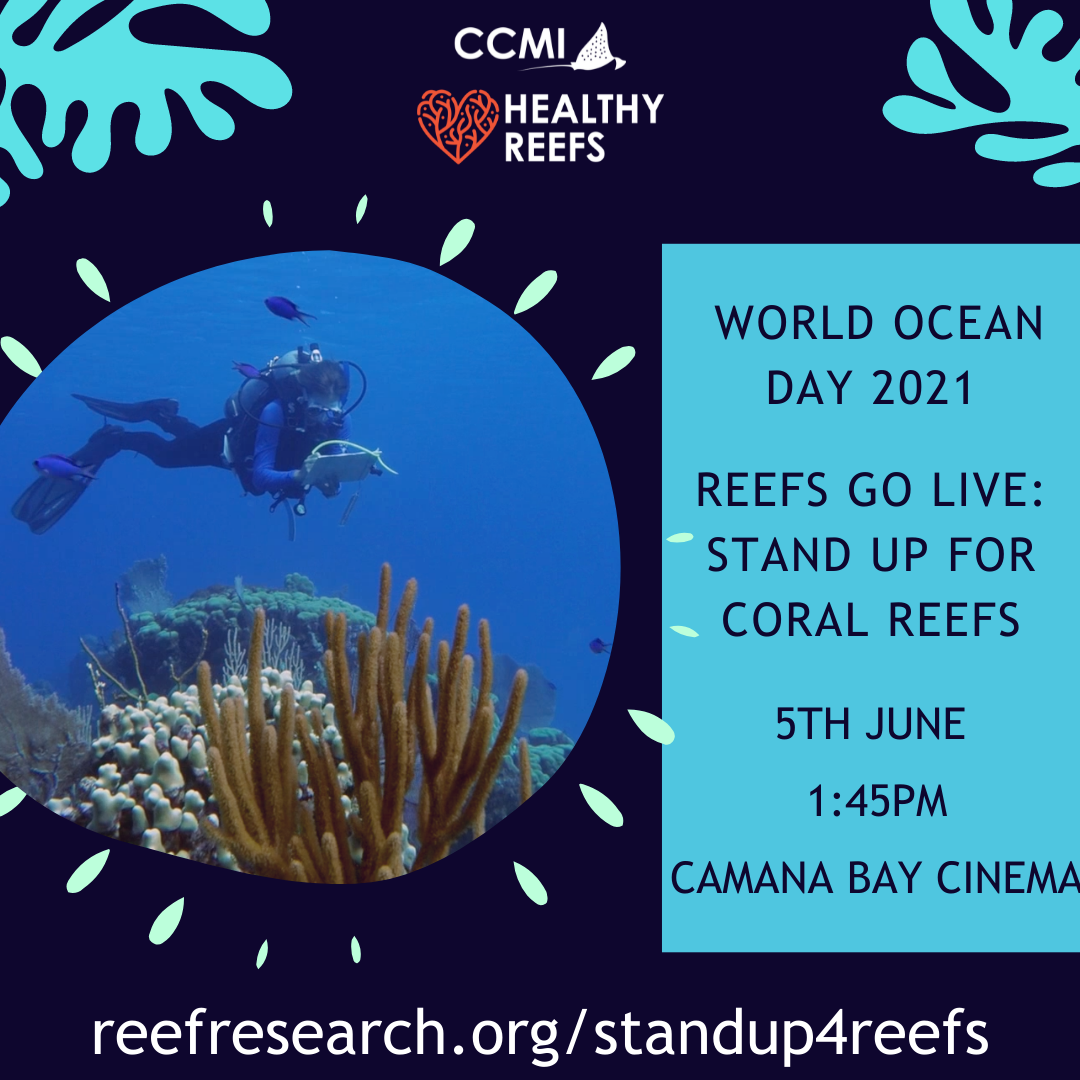 George Town, Cayman Islands; 28 May 2021 – World Ocean Day is celebrated across the globe on 8 June each year, and the Central Caribbean Marine Institute (CCMI) is encouraging people to join in the effort to Stand Up for Coral Reefs this June. Beaches, coastlines, and seas are all interconnected via one global ocean. The ocean covers over 70% of the earth, and coral reefs are an important component of ocean health as they support 25% of all marine life and provide homes and protection for up to one million species. Coral reefs can be found in the tropics, as well as colder and deeper locations around the globe. They play an important role in global food supply, tourism activity, coastline protection, and various economic activity where they are found.