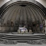 An altar of a damaged church is seen in the town of Qaraqosh, south of Mosul, Iraq, on April 11, 2017.