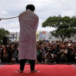 An Indonesian man is publicly caned for having gay sex, in Banda Aceh, Aceh province, Indonesia, on May 23, 2017.