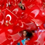 Imam Hatip religious school students wave national flags as they wait for arrival of Turkish President Tayyip Erdogan during a graduation ceremony in Istanbul, Turkey, on May 26, 2017.