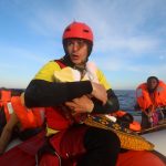 Spanish rescuer Daniel Calvelo carries a four-day-old baby girl into a RHIB, during a search and rescue operation by Spanish NGO Proactiva Open Arms, in central Mediterranean Sea, some 22 nautical miles north of the Libyan town of Sabratha, on April 1, 2017.
