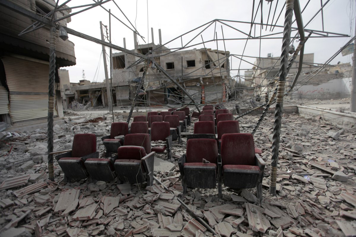 Damaged seats are pictured amidst rubble of buildings in the northern Syrian town of al-Bab, Syria on February 28, 2017.