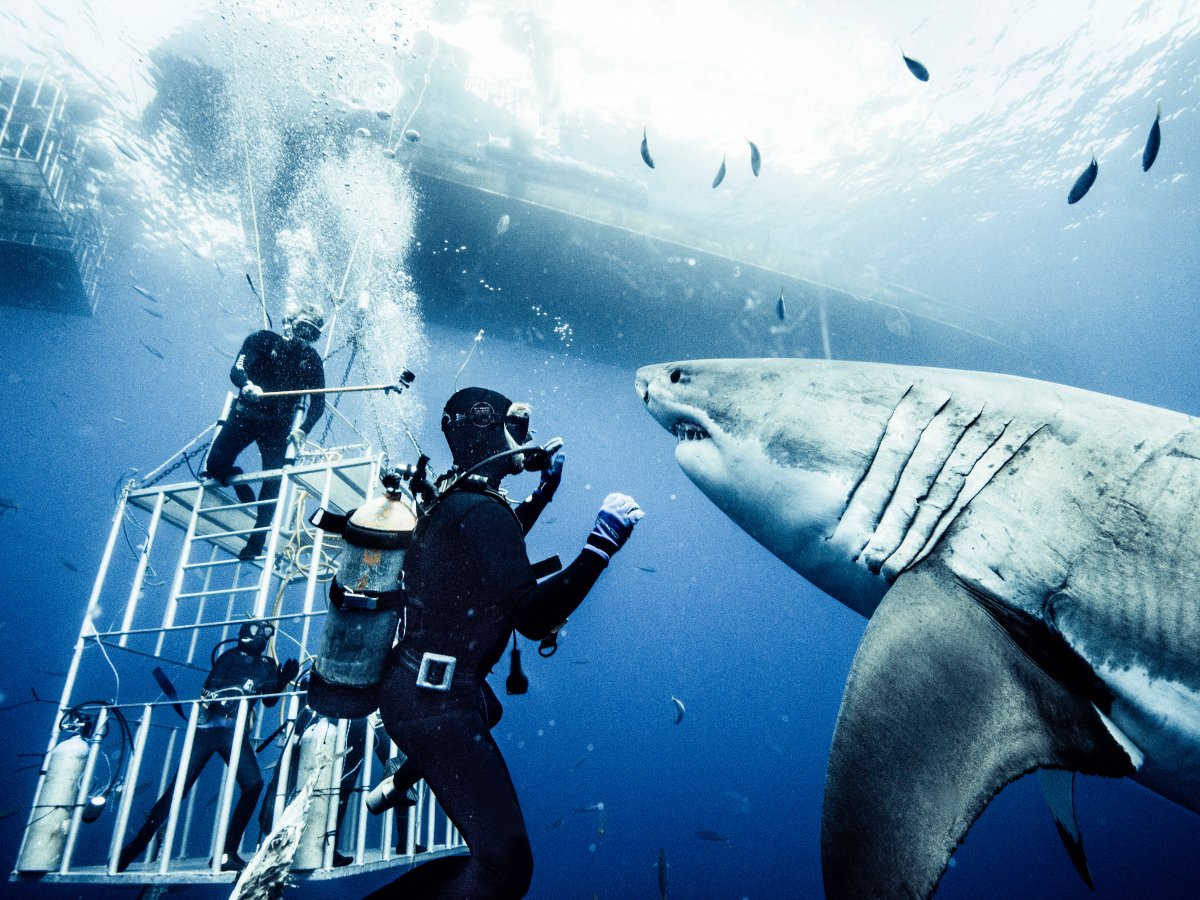 He went back to Guadalupe about six months later with seven assistants, strobe lights, the first submersible self-propelled cage, and cinema cage with no grates to start shooting the photos that would ultimately make it into his book.