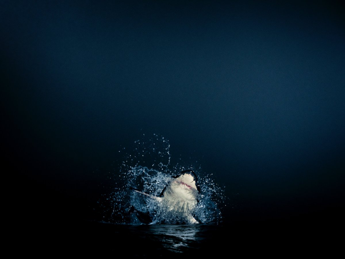 Muller was the first photographer to ever capture a shot of a great white breaching at night. No one was sure if sharks even breached at night before Muller saw it happen at False Bay in 2013.