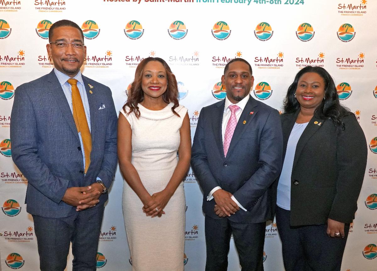 Kenneth Bryan, Chairman of CTO’s Ministerial Council and Minister of Tourism and Ports of the Cayman Islands (left), is pictured with CTO Secretary-General Dona Regis-Prosper; Bermuda Minister of Tourism Owen Darrell; and Rosa Harris, Chairman of CTO’s Board of Directors…