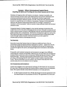 — Cayman’s goal isn’t to protect a particular provision in the tax code, Munk said. It’s to keep lawmakers from beating up on foreign tax havens as they craft a bill. “From Cayman’s perspective, they want to dispel the stereotypes that are outdated and don’t recognize Cayman’s strong record of compliance” with U.S. tax law, Munk said. “I think the policy outcome is less important to them — the U.S. can write its own [tax] code — than avoiding being unfairly criticized,” he added.